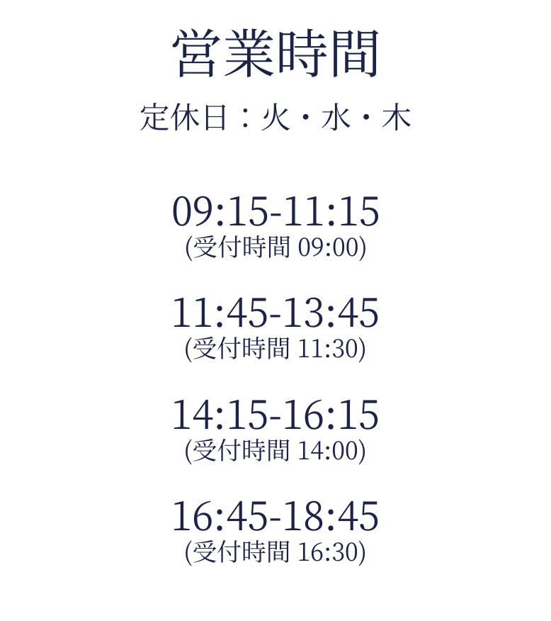 毎週火・水・木曜定休 ※繁忙期には営業することがございます